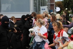 20.00 Частка дэманстрантак прарвалася праз ланцуг АМАПу, частка перайшла на іншы бок вуліцы. Жанчыны калёнай пайшлі далей.
