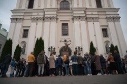 Каталікі выйшлі з касьцёла пасьля імшы і зрабілі крыжовы шлях вакол Чырвонага касьцёла. Яны маліліся за мітрапаліта Кандрусевіча, якому сёньня не дазволілі ўехаць у Беларусь.