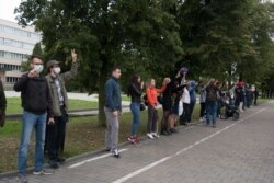 Каля мэдыцынскага ўнівэрсытэту ў Горадні каля 30 чалавек сталі ў «ланцуг салідарнасьці». Яны кажуць, што хочуць падтрымаць мэдыкаў, на якіх цяпер ціснуць улады. Іх падтрымліваюць сыгналамі аўтамабілі.