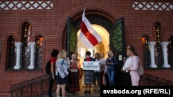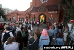 «Ланцуг салідарнасьці» і крыжовы шлях каля Чырвонага касьцёла. ФОТА