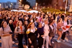 Калі на плошчы зьявіліся амапаўцы ў чорнай форме, жанчыны сталі ў счэпку, каб ня даць затрымаць мужчын. Амапаўцы падыйшлі да жанчын з ланцуга салідарнасьці, размаўляюць. Пакуль нікога не затрымалі.