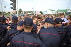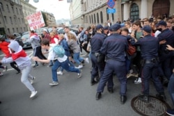 12:57 Навуковыя супрацоўнікі БДУ сказалі, што выйшлі на марш, каб падтрымаць студэнтаў. Яны кажуць, што сьвяткуюць дзень ведаў. «Маладыя больш рашучыя, мне здаецца, што гэта генэтычнае пачуцьцё страху», — сказала жанчына.