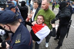 13:15 Каля станцыі мэтро «Плошча Якуба Коласа» стаяць таніраваныя мікрааўтобусы без нумароў зь людзьмі ў чорным унутры. Студэнты ідуць счэпкай, скандуюць: «Саша, ты адлічаны».
