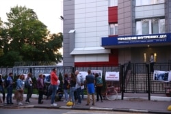 Каля 19.30 журналісты прыйшлі да РУУС Кастрычніцкага раёну. Яны прымацавалі плякаты да плоту ля ўваходу ў РУУС.