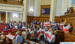 Пасяджэньне Вярхоўнай Рады Ўкраіны 4 верасьня пачалося з акцыі дэпутатаў у падтрымку грамадзян Беларусі, якія выйшлі на пратэсты супраць фальсыфікацыі выбараў і гвалту над удзельнікамі акцыяў.