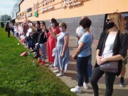 Каля 50 чалавек сталі ў ланцуг салідарнасьці каля гандлёвага цэнтру Old City у Горадні, а потым рушылі маршам па горадзе. Яны пратэстуюць супраць гвалту, асабліва ў дачыненьні да студэнтаў, школьнікаў, дзяцей.