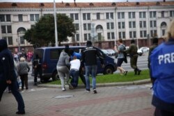 У Менску каля будынку на Незалежнасьці, 27 затрымалі апэратара тэлеканалу «Белсат» Максіма Калітоўскага, журналістку «Белсату» Алену Дубовік, а таксама некалькіх хлопцаў. Жанчыны спрабавалі іх адбіць, але не ўдалося.