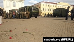 Плошчу зачысьцілі, аўтазакі зьехалі. Багінская стала перад аўтазакам, спрабавала не прапусьціць, але міліцыянты адштурхнулі яе ўбок. Дзясяткі жанчын засталіся на плошчы.