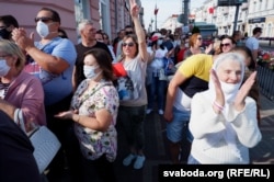 «Не падыходзьце ззаду, я расцэньваю гэта як напад!» — крычаў адзін зь міліцыянтаў на журналістаў.