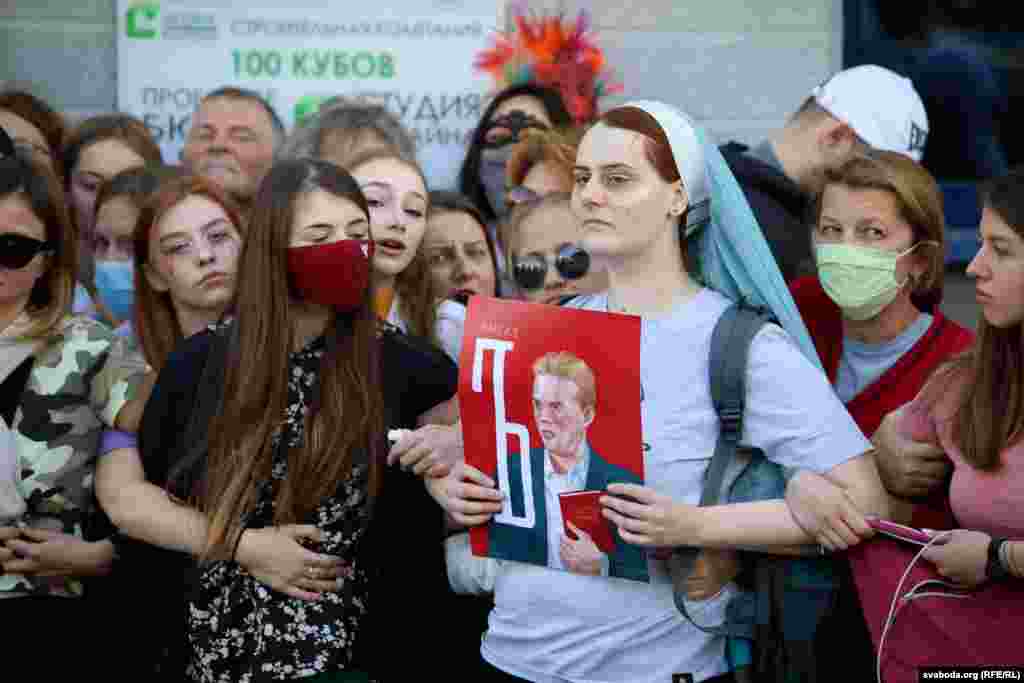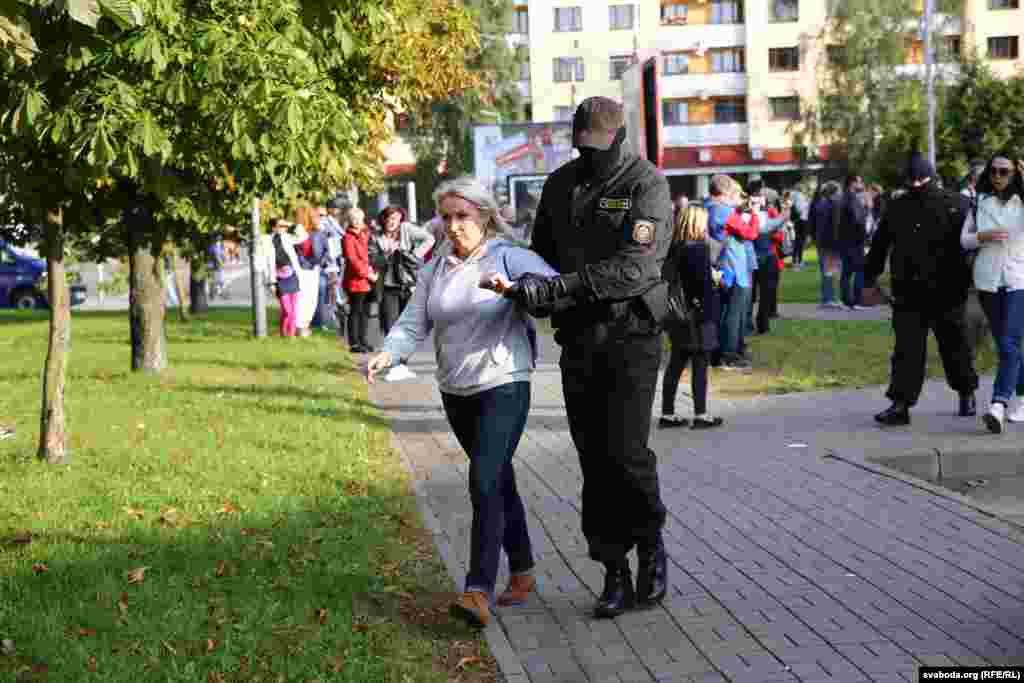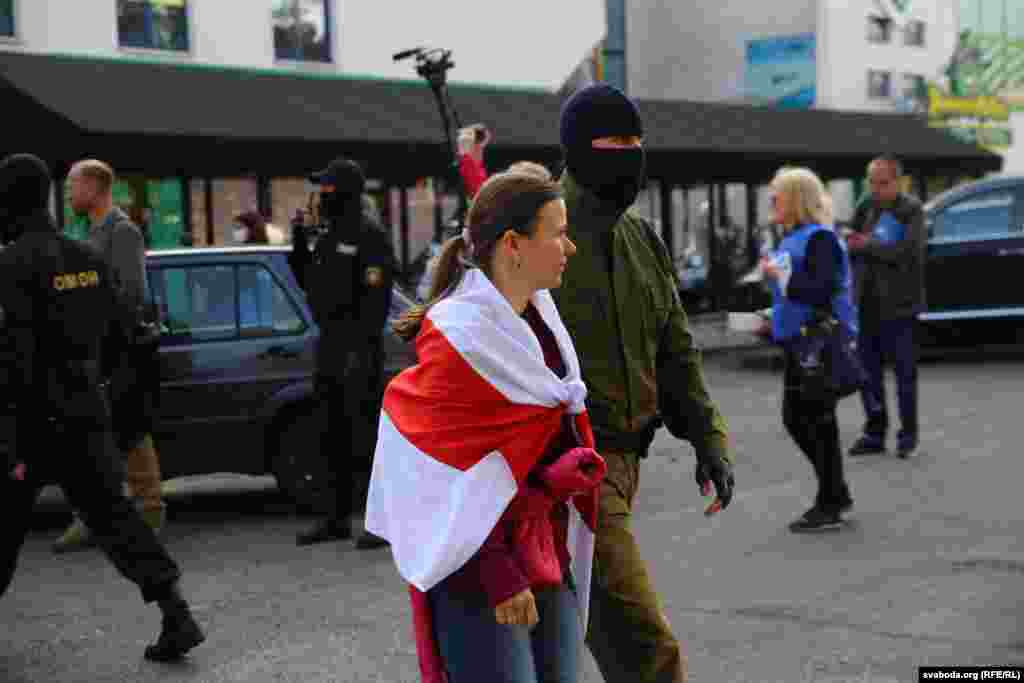 Сярод першых затрымалі 73-гадовую Ніну Багінскую, сымбаль мірнага пратэсту ў Беларусі. Пазьней яе адпусьцілі каля РУУС