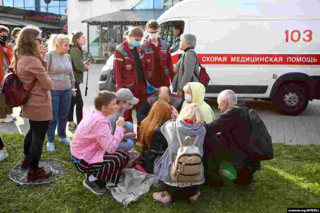 На месца разгону прыехала некалькі машын «хуткай дапамогі». Лекары аказвалі дапамогу жанчынам, якія страцілі прытомнасьць