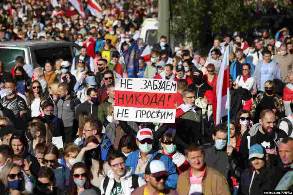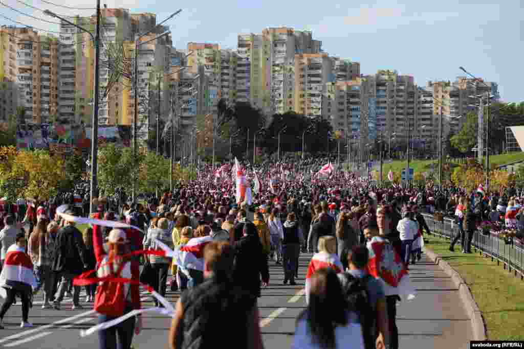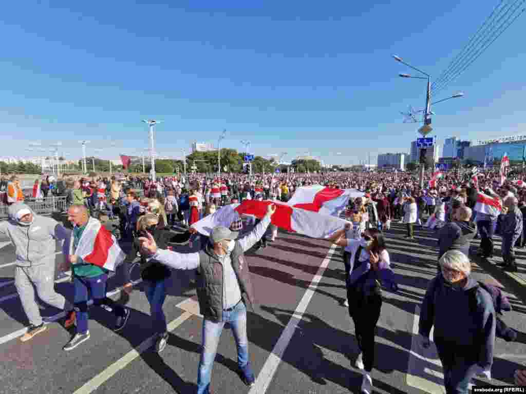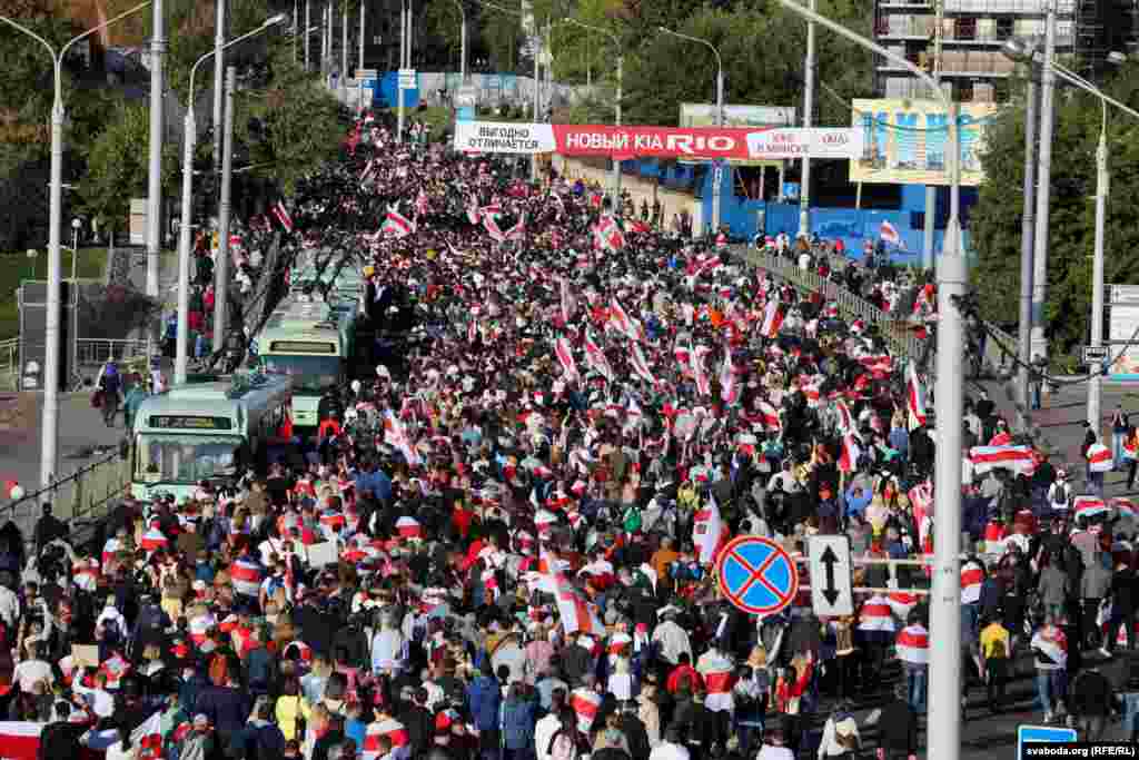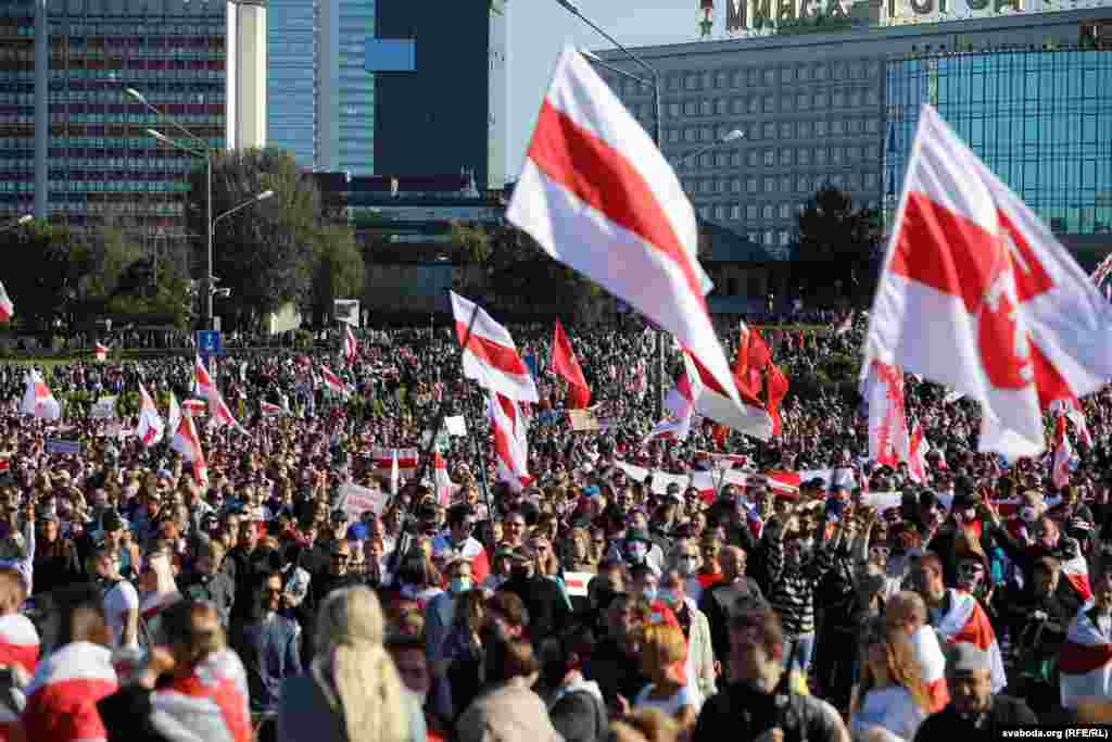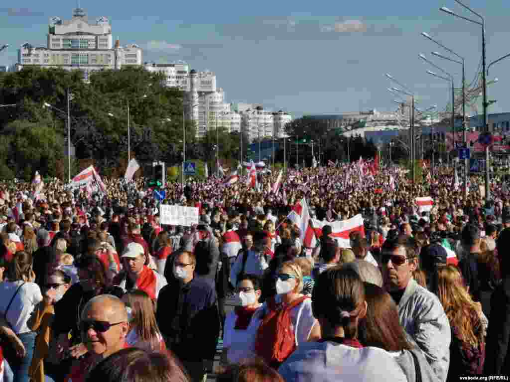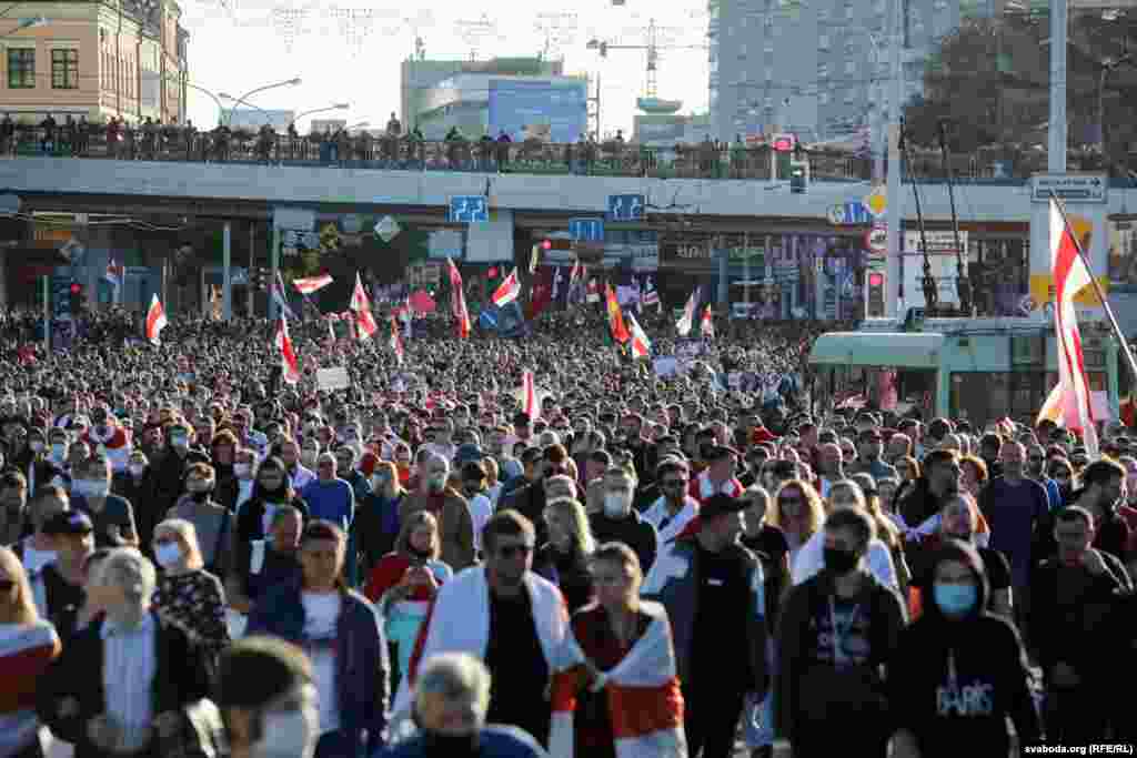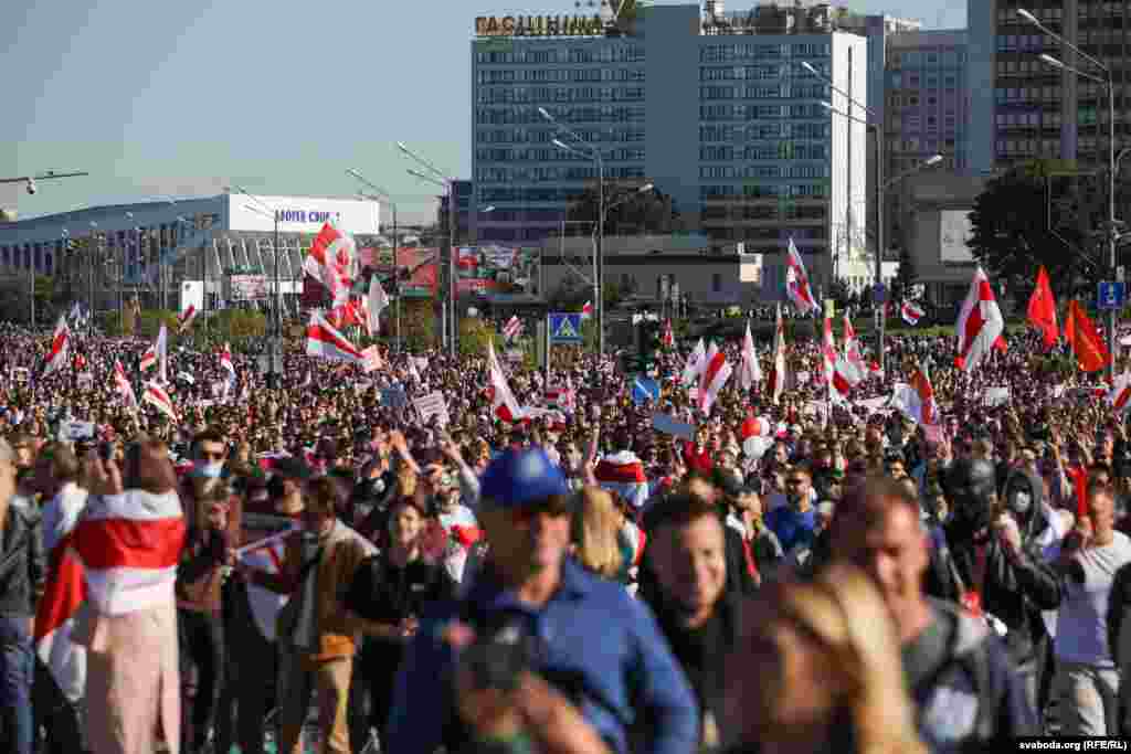 Шосты тыдзень запар у Менску праходзіла маштабная мірная акцыя пратэсту супраць улады Аляксандра Лукашэнкі. Сілавікі загадзя ачапілі многія стратэгічныя аб'екты, заблякавалі цэнтральныя часткі сталіцы і пачалі прэвэнтыўныя затрыманьні. Усё гэта не зашкодзіла менчукам сабрацца на праспэкце Пераможцаў і ўтварыць маштабнае шэсьце. Паводле агенцтваў Reuters і БелаПАН, у акцыі ўдзельнічалі больш за 100 тысяч чалавек.