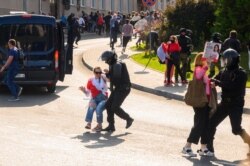 Неўзабаве да пратэстоўцаў пад’ехалі аўтазакі, таніраваныя мікрааўтобусы. Амапаўцы пачалі жорстка затрымліваць людзей.