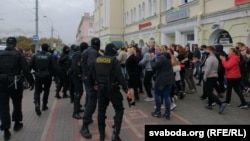 У Гомлі супраць дэманстрантаў прымянялі газ і сьвятлашумавую ракетніцу, затрымалі 20 чалавек. ФОТА