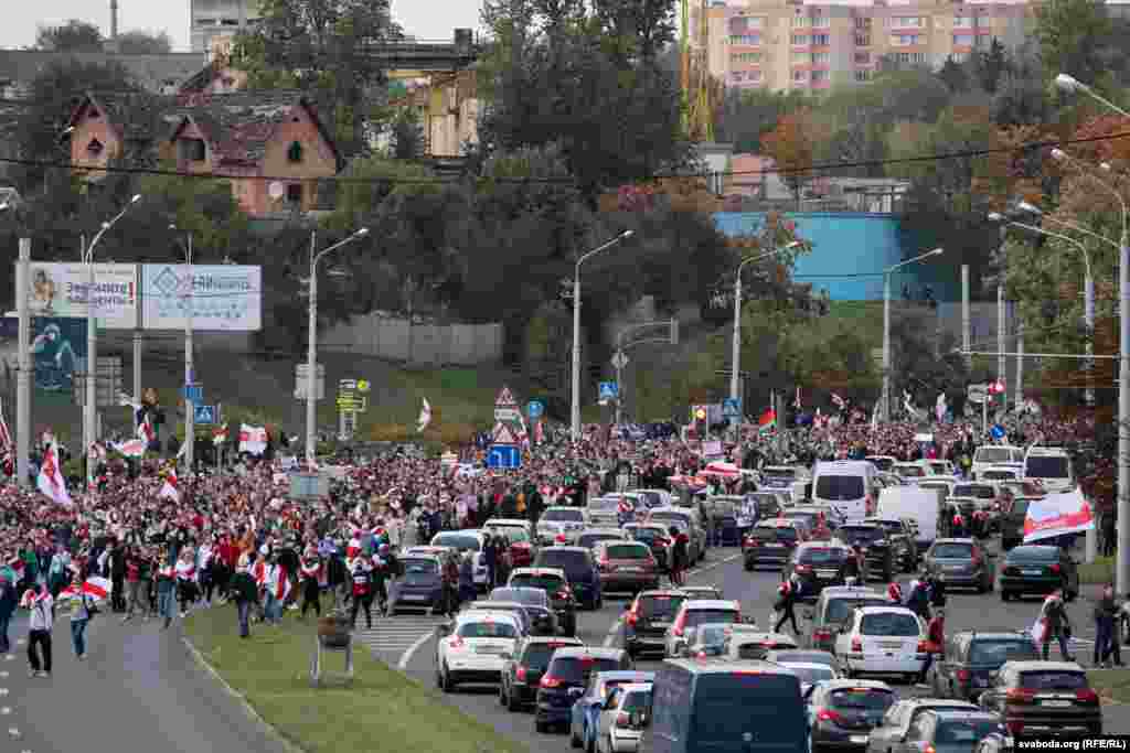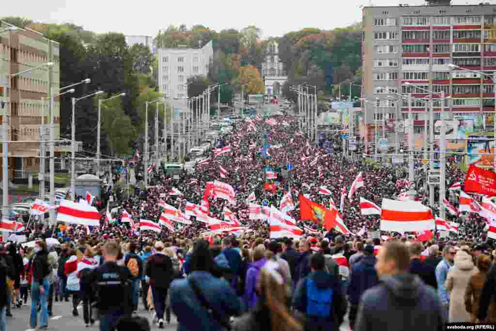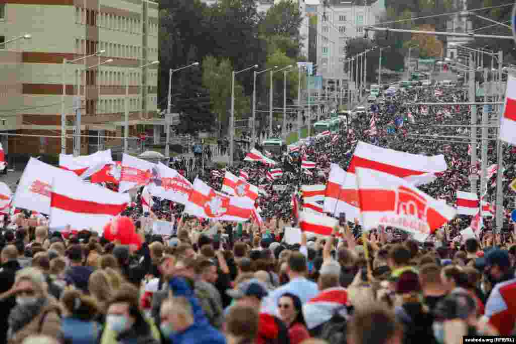 Дзясяткі тысяч людзей прымаюць удзел у «Маршаў вызваленьня палітвязьняў» у сталіцы. З пачатку прэзыдэнцкай кампаніі колькасьць палітычных зьняволеных у Беларусі вырасла з трох да 77. Глядзіце здымкі з 57-га дня пратэстаў супраць фальсыфікацыі прэзыдэнцкіх выбараў.