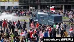 У менскай міліцыі прызналі факты выкарыстаньня вадамётаў супраць мірных удзельнікаў пратэсту, патлумачыўшы гэта неабходнасьцю астудзіць найбольш «агрэсіўна настроеную частку пратэстоўцаў».