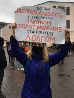 «Калі несправядлівасьць становіцца законам, супраціў становіцца абавязкам!» — студэнтцы з гэтым плякатам далі 15 сутак
