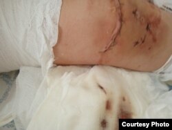 – Калі зрабілі апэрацыю, дактары моцна мацюкаліся, – сказалі, што калена было «ў кашу», а самае цяжкае, што суткі не давалі мэдычную дапамогу і ўсе тканкі прасяклі крывёй.