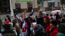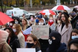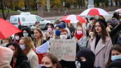 Жаночы марш працягваецца. Дэманстранты дайшлі да Кастрычніцкай плошчы, скандуюць «Страйк!», «Пайшоў вон, ты і твой АМАП!».