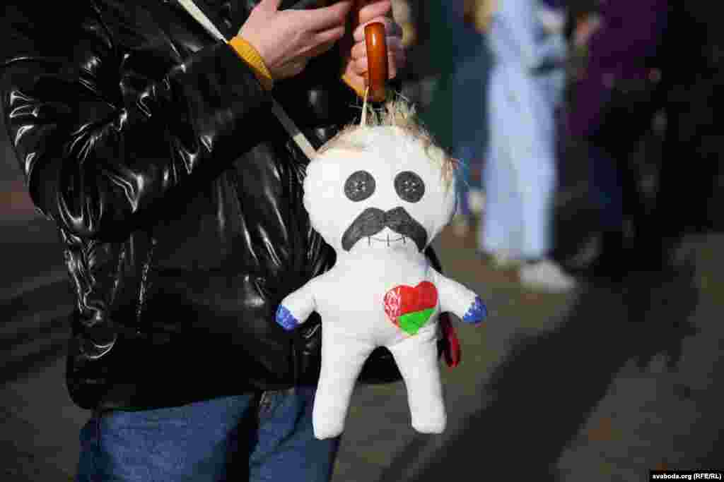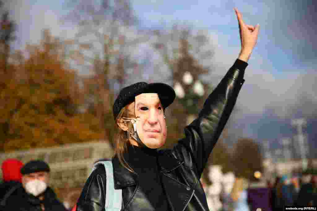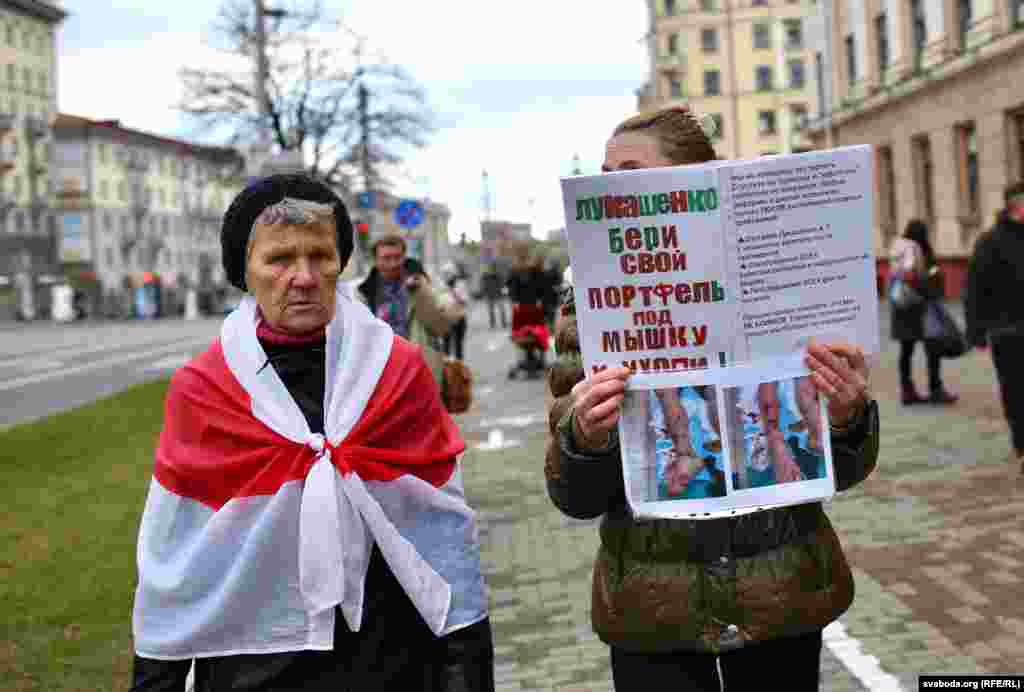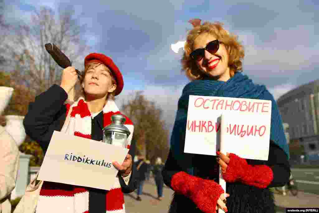 Людзі ў масках старшыні Савету рэспублікі Натальлі Качанавай і кіраўніка ГУБАЗіКу Мікалая Карпянкова