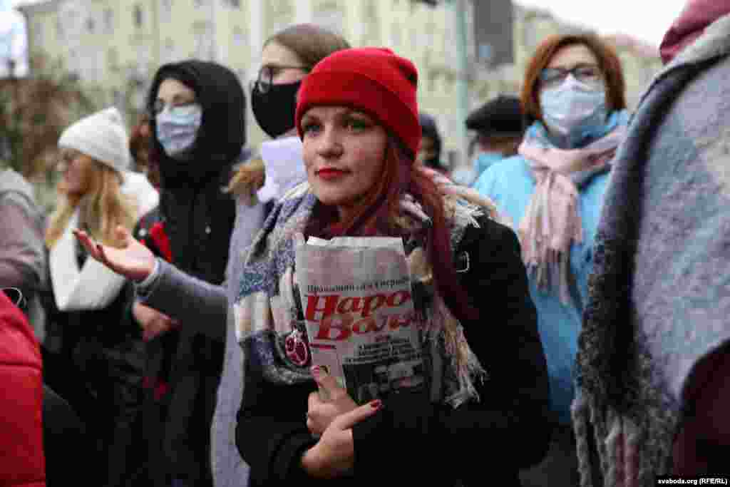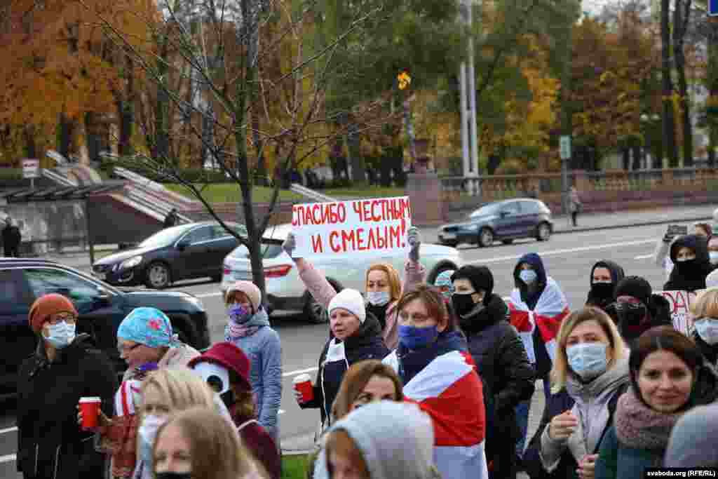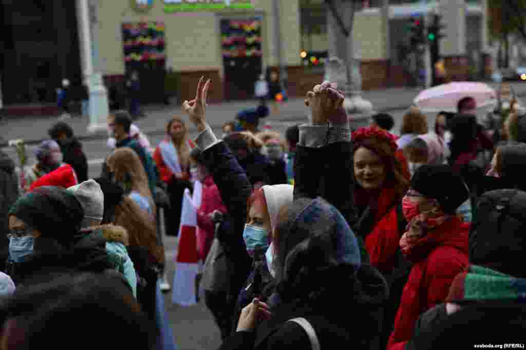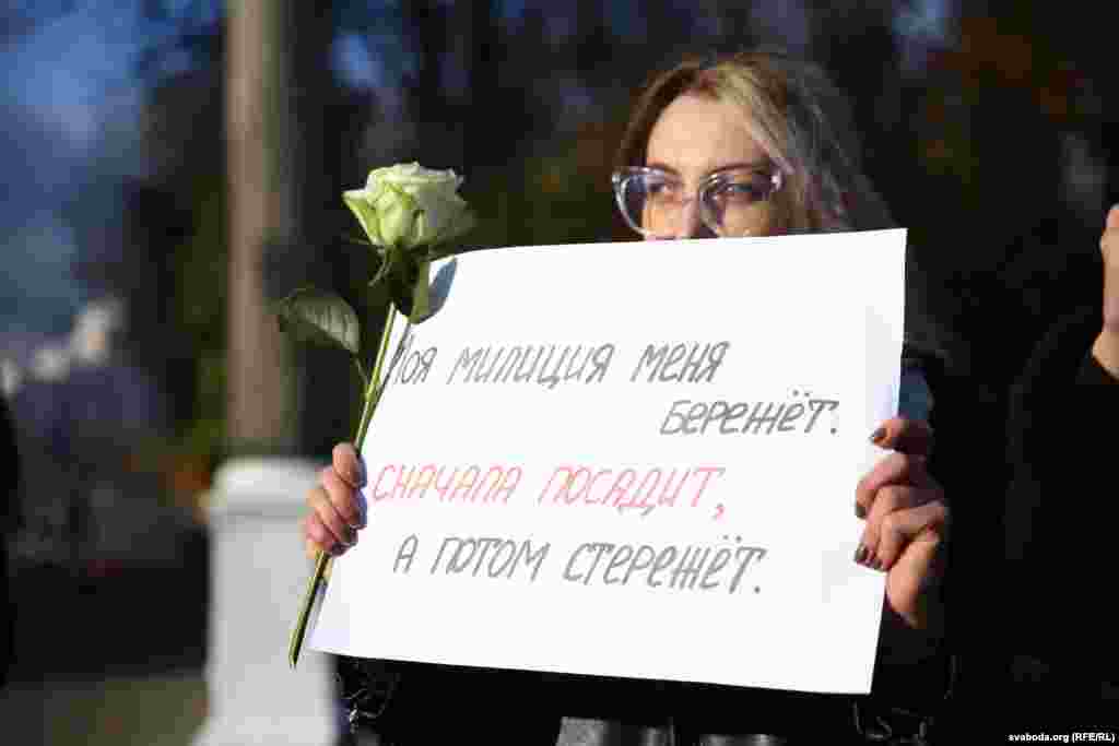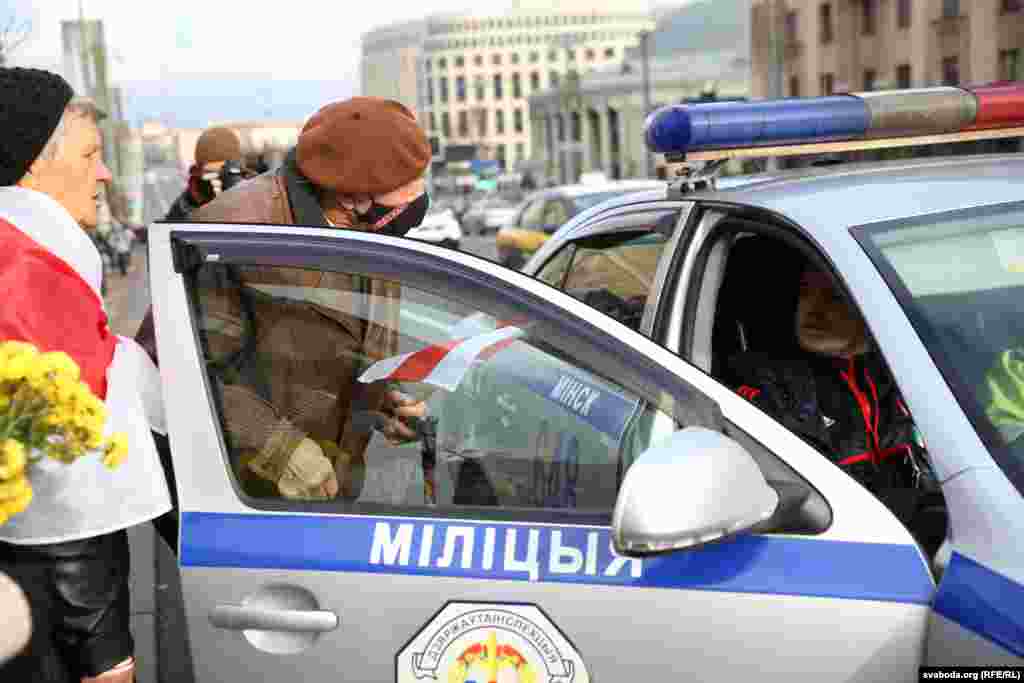 Недалёка ад вуліцы Янкі Купалы супрацоўнікі ДАІ ў суправаджэньні чатырох мікрааўтобусаў сілавікоў спынілі вадзіцеля, які сыгналіў удзельніцам маршу. Яго адвялі для разгляду ў машыну дарожна-патрульнай службы