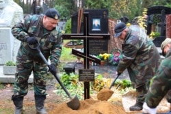 Як на Ўсходніх могілках Менску перапахавалі прах Зьмітрака Бядулі. Фота