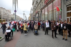 Людзі з інваліднасьцю 5 лістапада прайшлі ад Чырвонага касьцёла, што на плошчы Незалежнасьці, да Кастрычніцкай плошчы Менску.