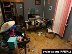 Як расказалі Свабодзе суседзі, спадарыня Багінская выклікала на невядомых людзей міліцыю. Неўзабаве ў кватэру падняліся каля дзясятка людзей у чорнай вопратцы, падобнай да адзеньня людзей, якія зьбіваюць удзельнікаў мітынгаў. Чалавек, як праводзіў вобшук, назваў сябе Стральцовым.