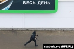 Супрацьстаяньне мірных пратэстоўцаў і ўзброеных сілавікоў у мікрараёне Каменная Горка ў Менску Photo: svaboda.org (RFE/RL)