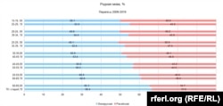 Графік 6. Мова хатняга ўжытку аднолькавых узроставых кагортаў