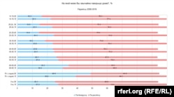 Як і ў сытуацыі з адукацыяй, нязьменнасьць агульных лічбаў — раўнадзейная рознаскіраваных зьменаў у розных узроставых групах.