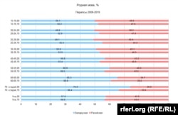 Графік 5. Родная мова аднолькавых узроставых кагортаў
