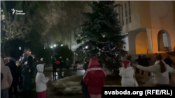 Жыхары Менску сьвяткавалі надыход 2021 году сустрэчамі ў дварах, некаторыя выйшлі зь бел-чырвона-белымі сьцягамі і ў адзеньні бел-чырвона-белых колераў, піша БелаПАН.