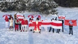 Менск. Прагулка па марозе з парасонамі ў нацыянальных колерах