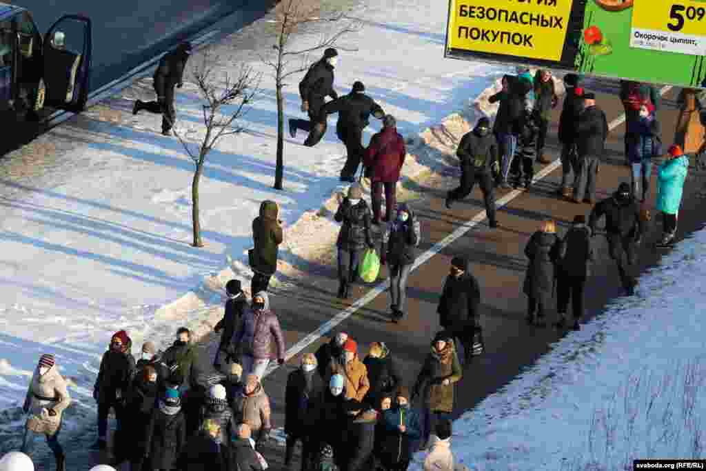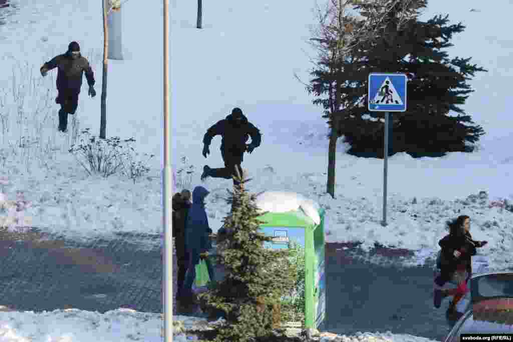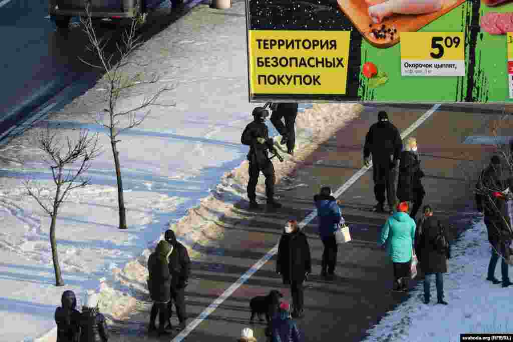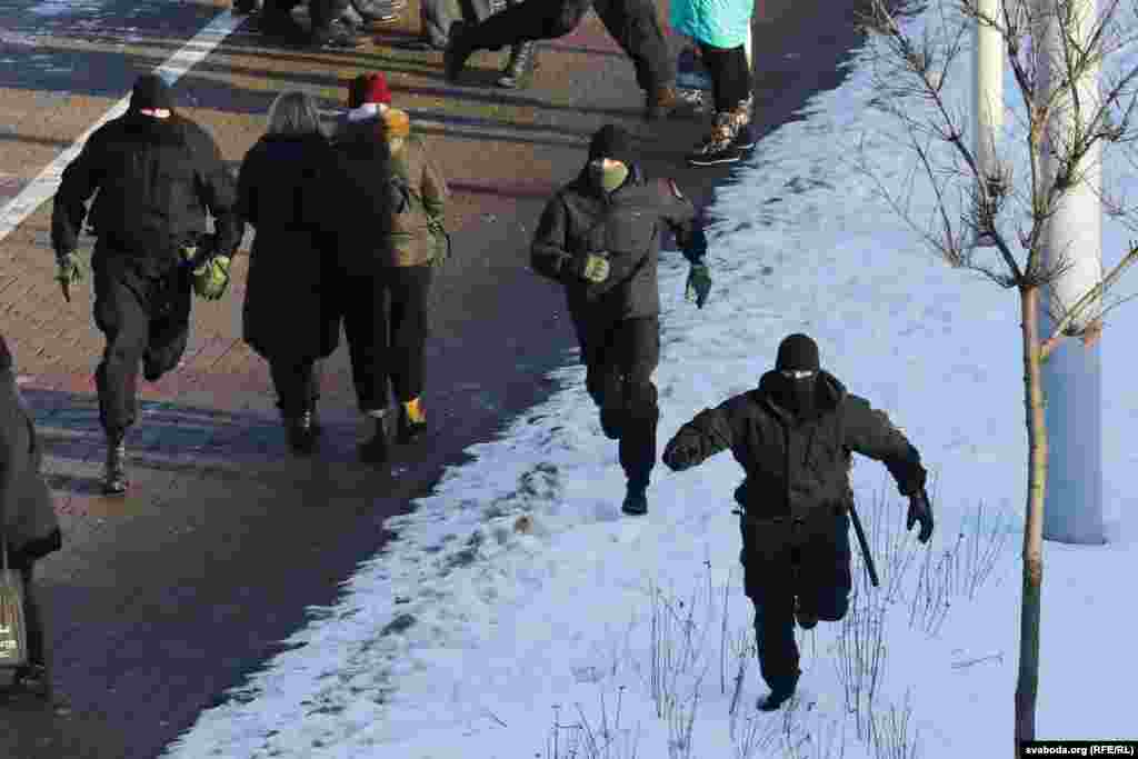 Сілавікі з стрэльбамі разагналі ланцуг салідарнасьці ў Каменнай Горцы. ФОТА