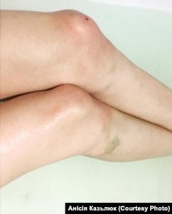 Па вяртаньні на старонцы ў Фэйсбуку Анісія выклала фатаздымак сваіх ног у сіняках.