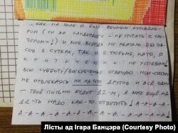 Краязнаўца зь Берасьця Ігар Бараноўскі, які летась сам адседзеў «суткі», атрымаў ліст ад Банцэра, напісаны 3 сакавіка, у першы дзень ягонай галадоўкі.