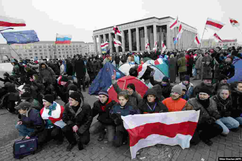 Намёты ў цэнтры Менску, шэсьце на Акрэсьціна. Як 15 гадоў таму пратэставалі супраць несумленных выбараў
