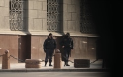 Аўтобусы сілавікоў на вуліцы Валадарскага: