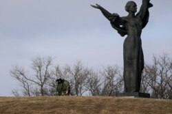 Стэла амаль вольная, але за стэлай стаяць грузавікі з вайскоўцамі