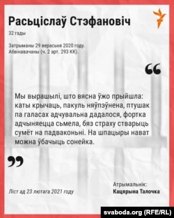 Калі вы лістуецеся зь вязьнямі і хочаце падзяліцца натхняльнымі фрагмэнтамі зь іхных лістоў, пішыце на radiosvaboda at gmail.com або ў нашыя сацыяльныя сеткі з пазнакай «Цытаты праз краты».