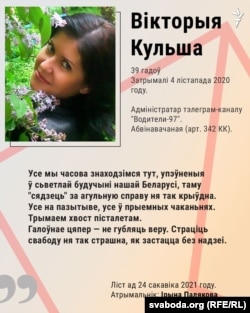 • Адміністратар тэлеграм-каналу «Водители-97». Абвінавачаная (арт. 342 КК)