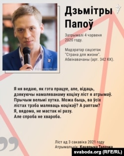 Калі вы лістуецеся зь вязьнямі і хочаце падзяліцца натхняльнымі фрагмэнтамі зь іхных лістоў, пішыце на radiosvaboda at gmail.com або ў нашыя сацыяльныя сеткі з пазнакай «Цытаты праз краты».