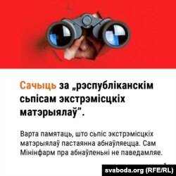 1. Сачыць за рэспубліканскім сьпісам экстрэмісцкіх матэрыялаў