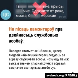 «Зразумела, што фраза „пасадзіць на вілы“ дакладна будзе ўспрынятая як пагроза, — дадае Наста. — Ёсьць асобны артыкул за абразу, асобны — за гвалт альбо заклікі да гвалту. Ёсьць распальваньне варожасьці, цяпер ужо і асобнай сацыяльнай групай прызнаюць чыноўнікаў і міліцыю — гэта яшчэ адзін крымінальны артыкул. Гэта пачалося акурат у 2020 годзе. Хоць ёсьць міжнародныя стандарты, якія кажуць, што чыноўнікі ня могуць быць асобнай сацыяльнай групай, якую неабходна дадаткова абараняць».