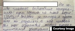 У другім лісьце, атрыманым праз тры дні, дзяўчына падзякавала ўсім, хто пра яе клапоціцца, за падтрымку, перадачы і добрыя словы. «Ня ведаю, чым я гэта ўсё заслужыла. Адчуваю, што вы побач, думаеце пра мяне», — піша Алена Талкачова.