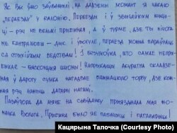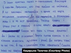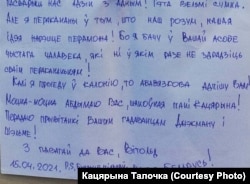 Ліст Вітольда Ашурка Кацярыне Талочцы, датаваны 15 красавіка 2021 году.