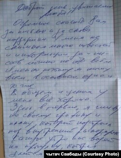 «Агулам у мяне ўсё добра. Тут, у турме, я жыву паводле свайго графіку і пляну, які падладзіў пад унутраны распарадак.