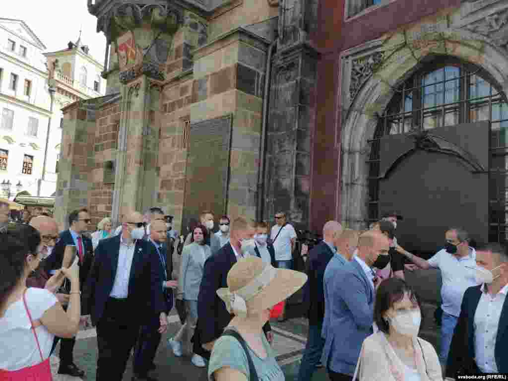 Сотні людзей прыйшлі на акцыю салідарнасьці зь Беларусьсю ў цэнтры Прагі. Выступае Ціханоўская. Фота
