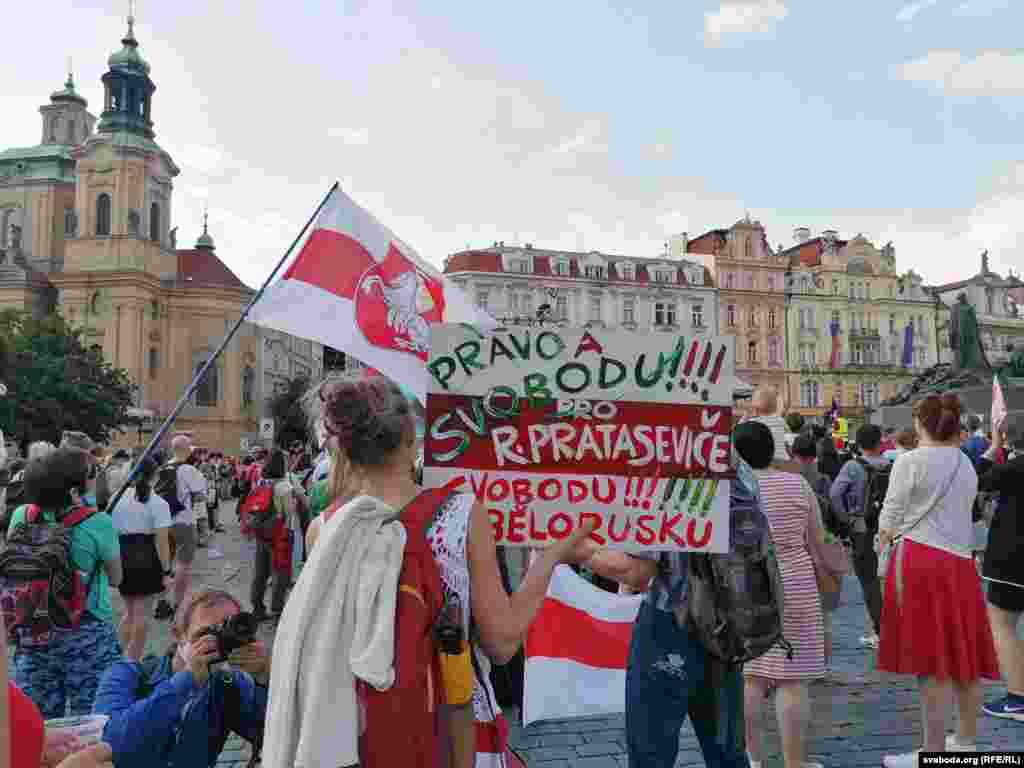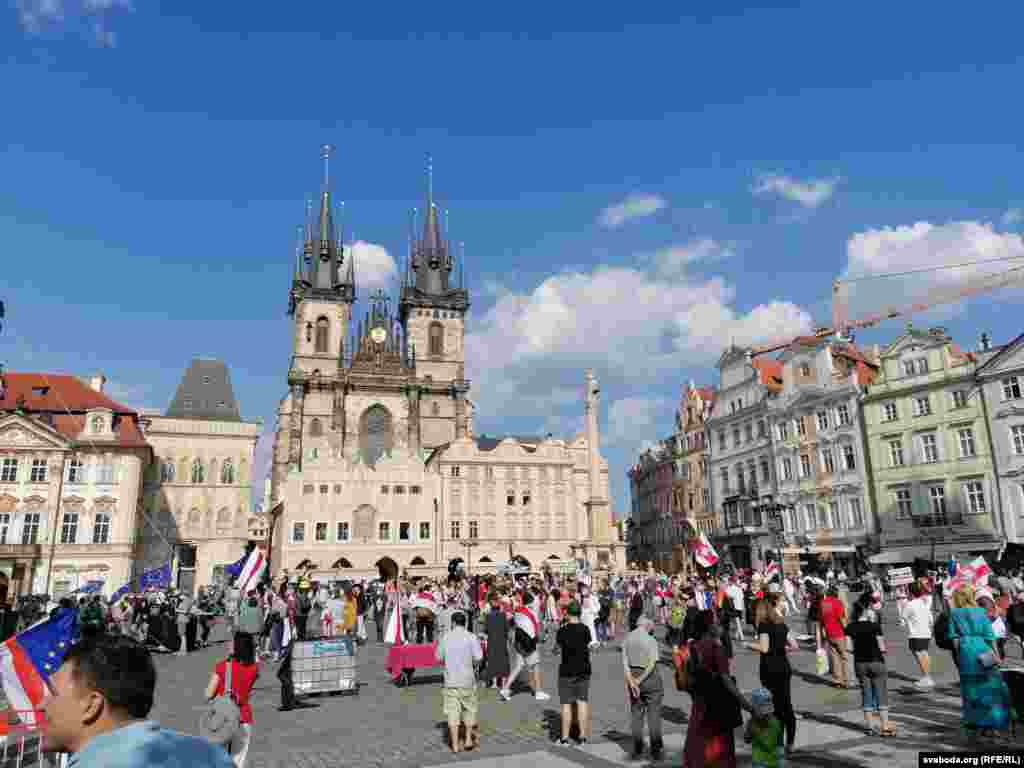 Некалькі сотняў чалавек на Старамесцкай плошчы ў Празе прымаюць удзел у акцыі салідарнасьці зь Беларусьсю.